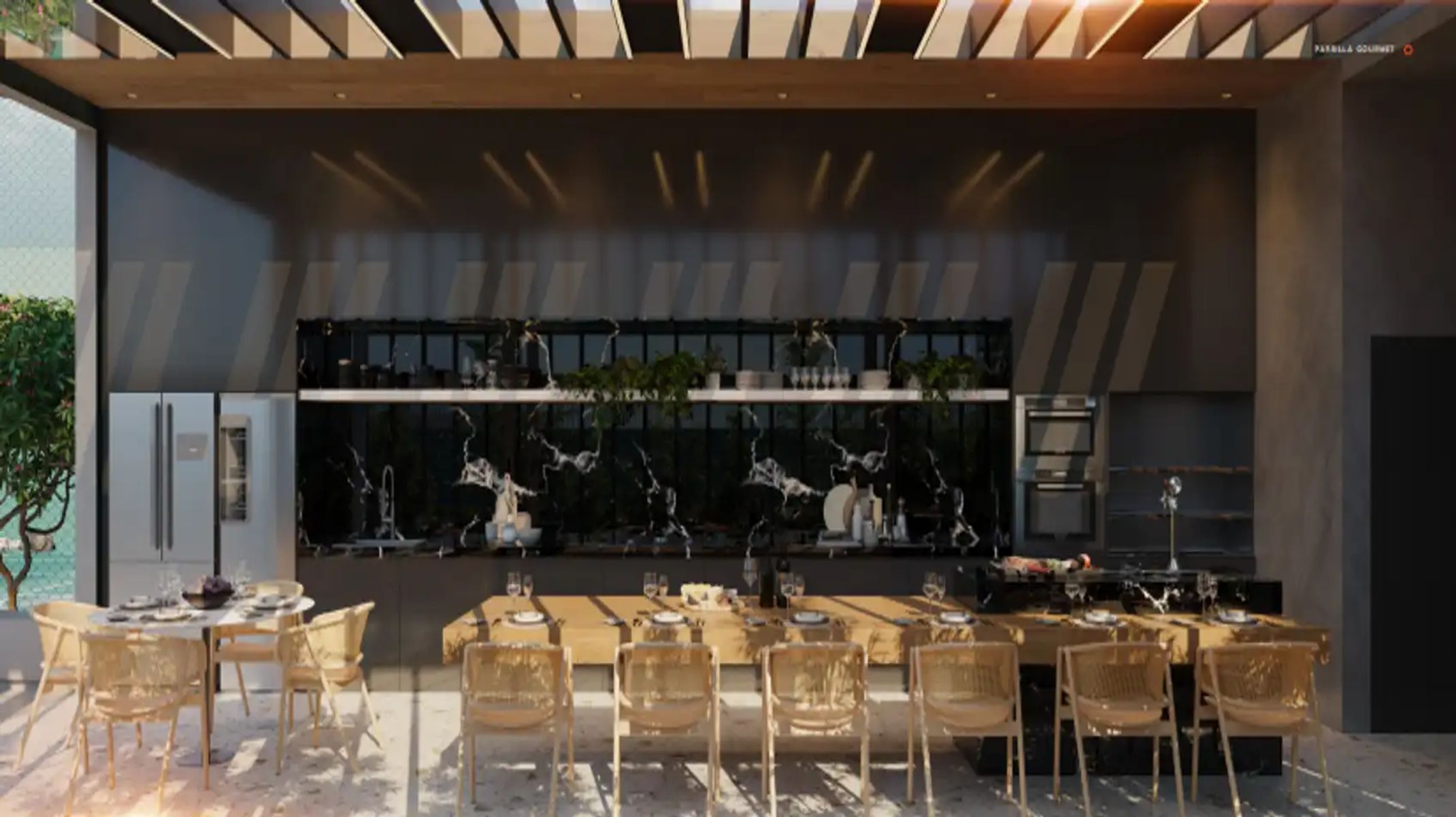 O prédio conta com: Quadra Poliesportiva, Espaço de Massagem, Guarita Blindada com Eclusa, Coworking, Piscina Aquecida, Salão de Festas, Bicicletário, Pet Place, Academia, Espaço Gourmet, Interfone, Salão de Jogos, Piscina com Raia Coberta, Sauna, Quadra de Tênis, Câmeras de Vigilância, Acesso com Tag às Áreas Comuns, Fechadura Biométrica, Parrilla Gourmet, Espaço Beleza.