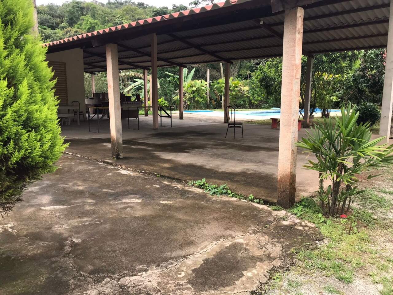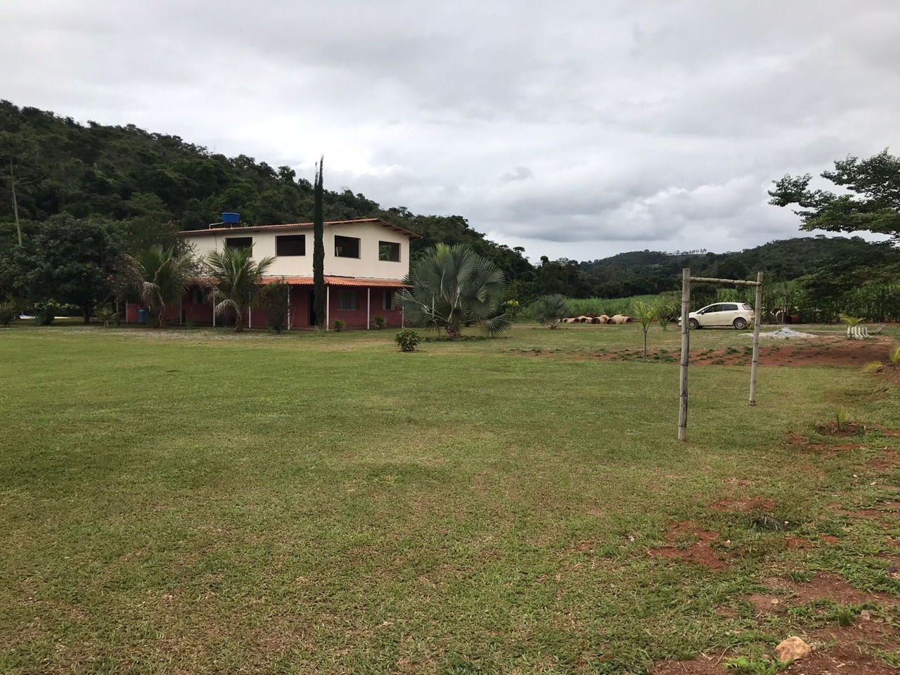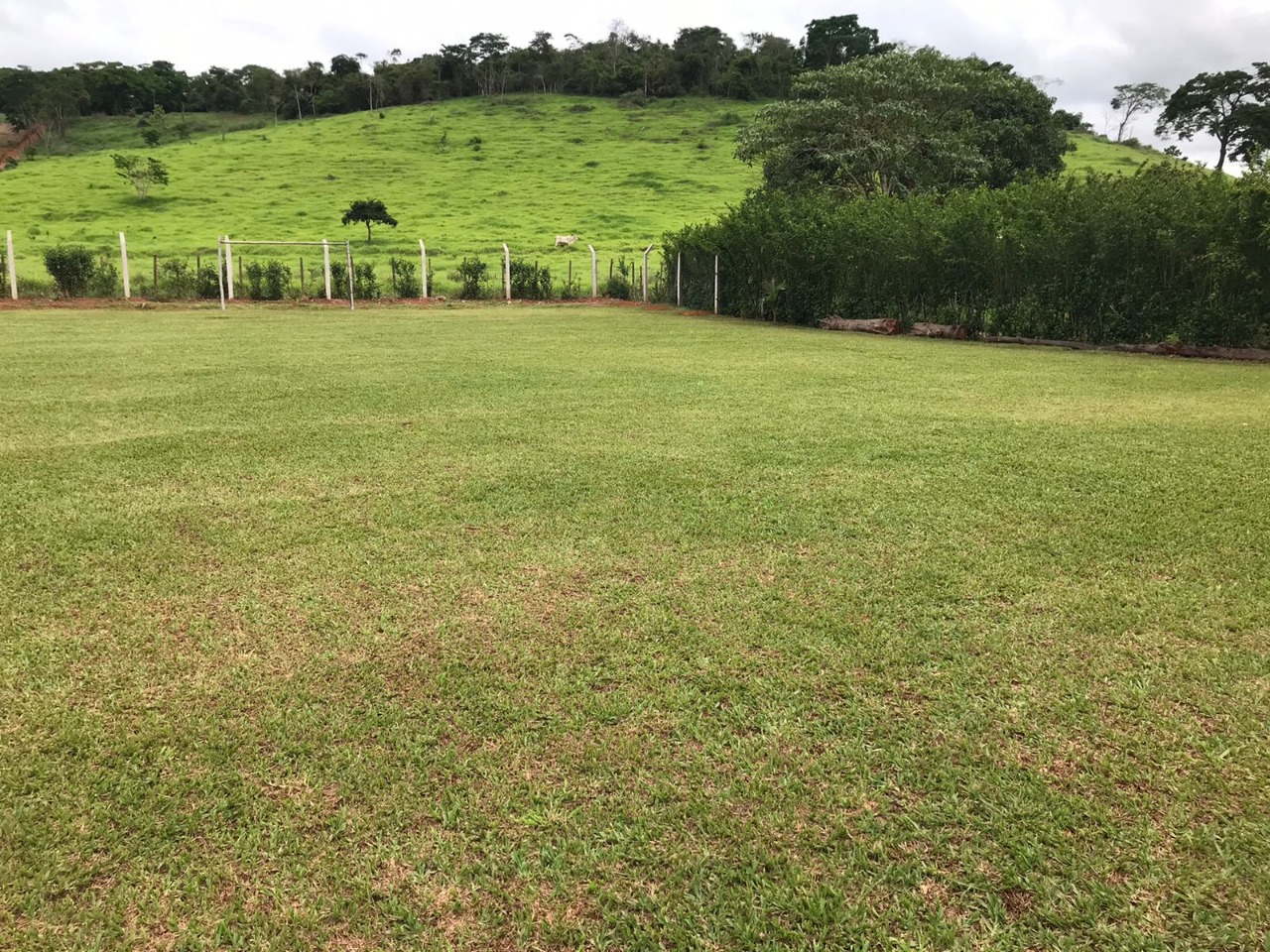 A área de lazer é completa e possui piscina, fogão a lenha e campo de futebol.