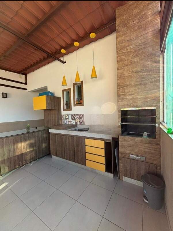 O segudo pavimento possui 01 sala de apoio, 01 quarto suíte, espaço gourmet com churrasqueira, bancada com pia e armários, cheveirão, telhado retratil com acionamento por controle remoto, banheiro e área de serviço.