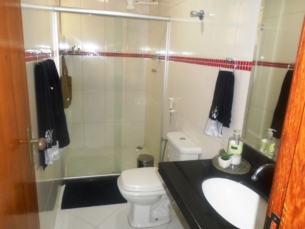 Possui no térreo: 03 quartos, sendo 01 com suíte e varanda, sala, banheiro social, cozinha com área de serviço;