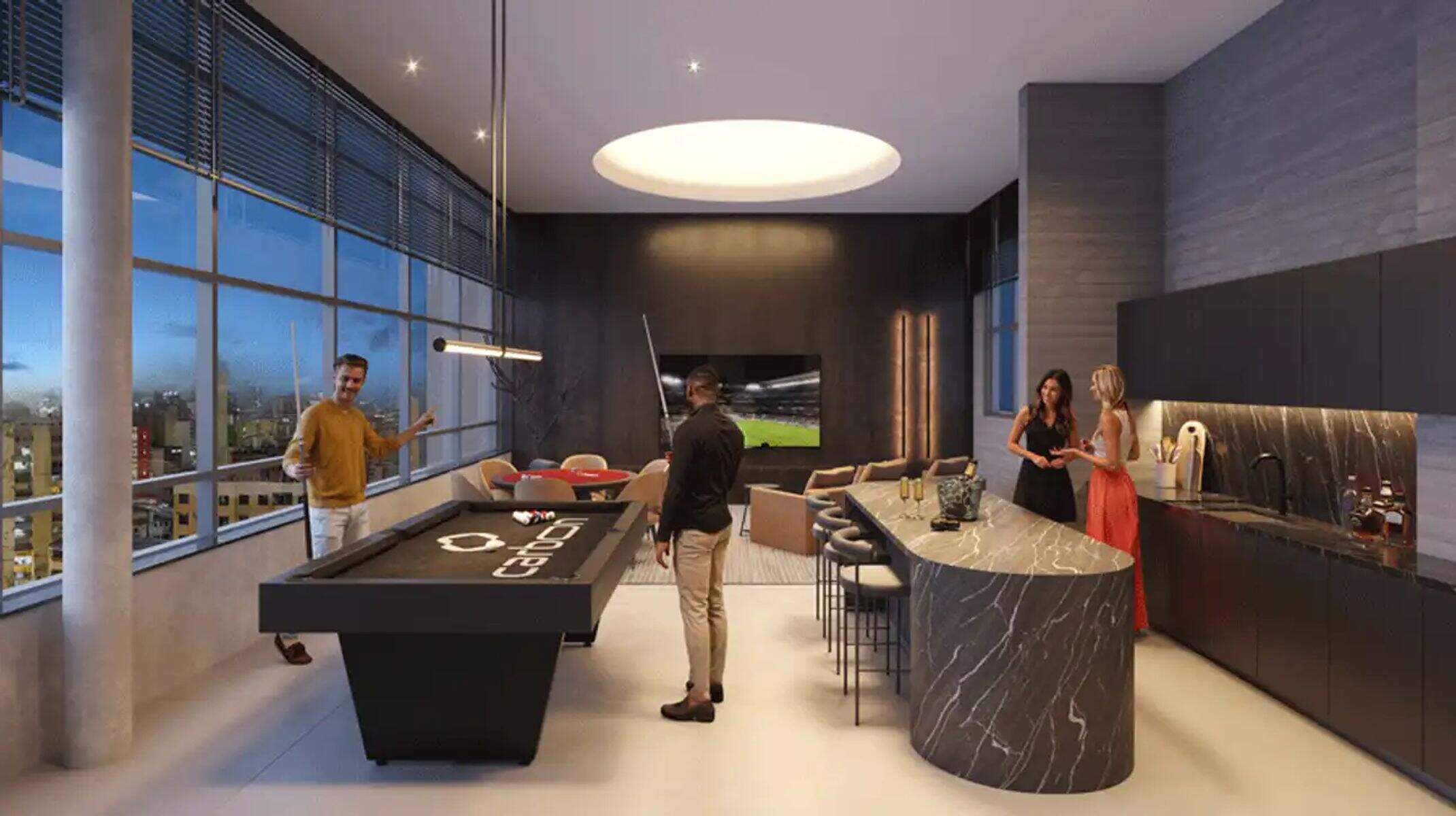 O prédio conta com: Tomadas USB, Guarita Blindada com Eclusa, Coworking, Piscina Aquecida, Salão de Festas, Áreas Comuns Decoradas e Equipadas, Entrada pra Entregadores, Portaria 24 Horas, Acesso por Reconhecimento Facial, Lavanderia, Apoio Funcionários, Pet Place, Academia, Espaço Gourmet, Interfone, Salão de Jogos, Paisagismo, Sauna, Infraestrutura para Automatização Residencial, Circuito CFTV, Hall de Entrada, Câmeras de Vigilância, Lockers para Delivery, Fechadura digital, Sinuca, Portaria Virtual, Lazer no Rooftop, Mesa de Pôquer, Captação de Água Pluvial, Aplicativo para Gestão.