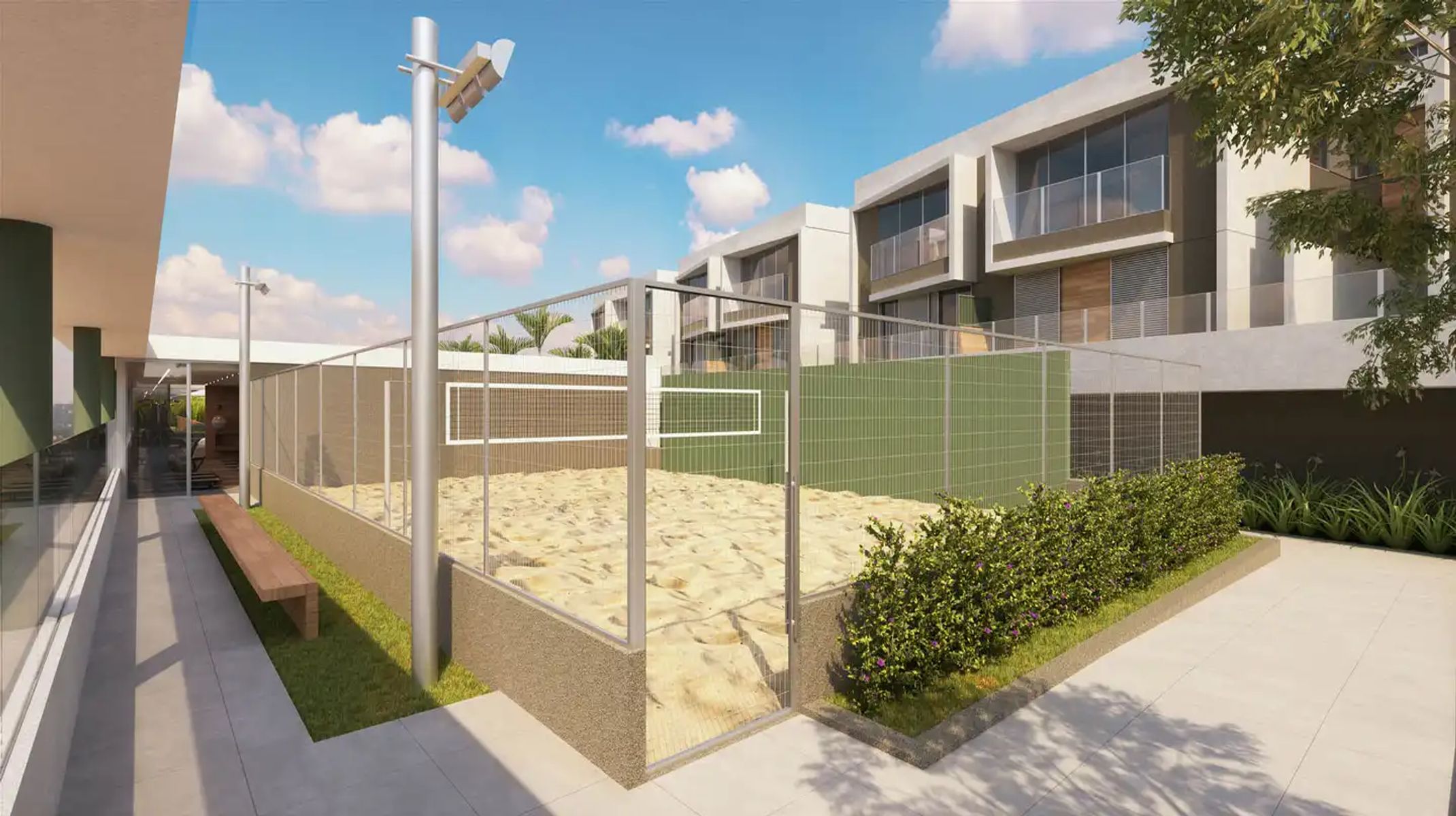 O prédio conta com: Tomadas USB, Quadra de Beach Tennis, Salão de Festas, Guarita, Pet Place, Academia, Espaço Gourmet, Playground, Piscina com Raia, Carregador de Carro Elétrico, Piscina Infantil, Deck molhado.