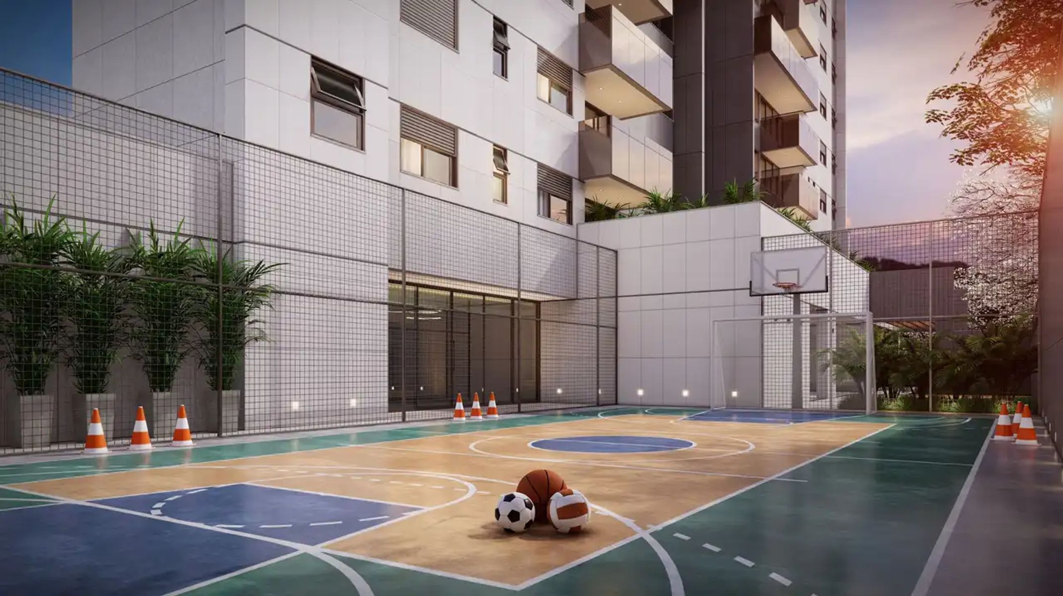 O prédio conta com: Quadra Poliesportiva, Tomadas USB, Espaço Kids Interno, Coworking, Salão de Festas, Áreas Comuns Decoradas e Equipadas, Guarita com Eclusa, Bicicletário, Pet Place, Academia, Espaço Gourmet, Playground, Veneziana Automática, Varanda Gourmet, Wi-Fi, Sauna, Lockers para Delivery, Fechadura digital, Piscina com Raia, Box de Despejo.
